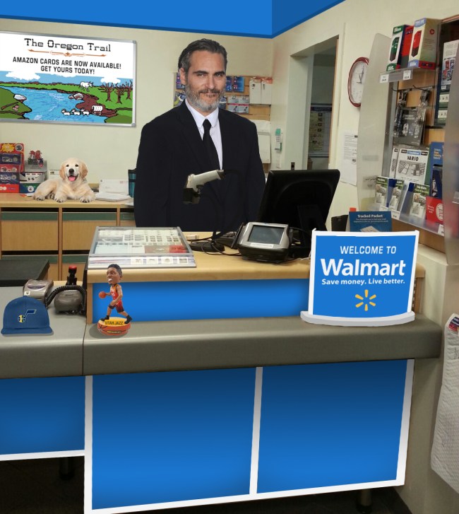 I sent Kayla a picture of the Walmart employee, Arthur Fleck, the character played by Joaquin Phoenix in Joker.