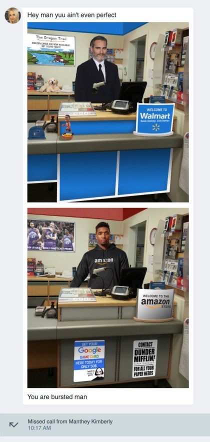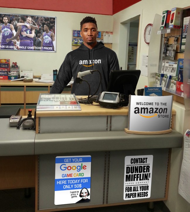 I sent Kayla a picture of Amazon employee Donald Mitchelson, played by none other than Utah Jazz phenom Donovan Mitchell.