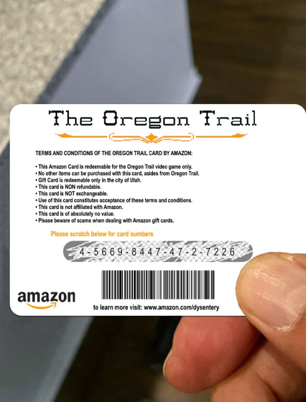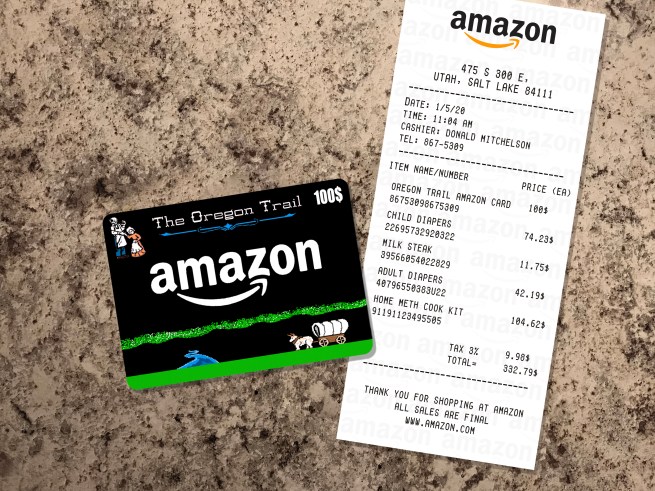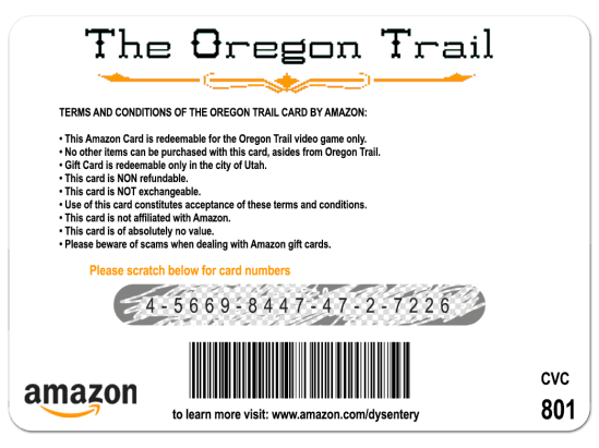 Kayla seemed pumped to play Oregon Trail with me so I figured why buy a regular Amazon gift card when I could surprise her with something special instead?