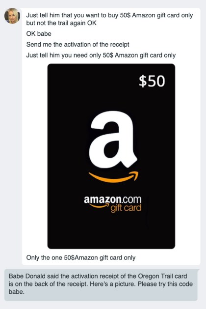 Now back to Kayla trying to sort out the Amazon gift card mishap…