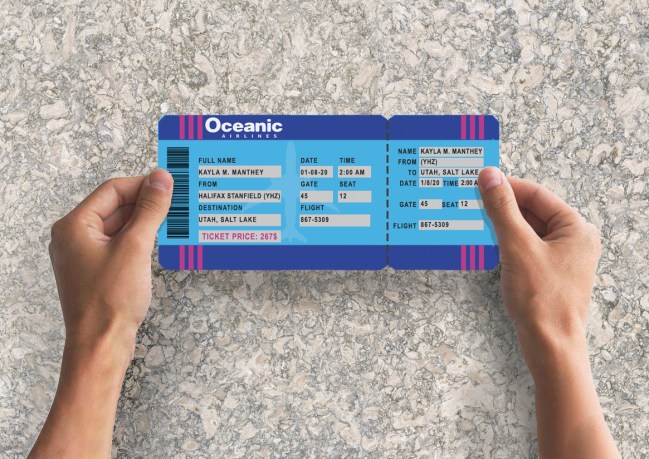 Such a grand gesture! I was sure Kayla would be thrilled that I booked her a seat on the disastrous Oceanic Airlines from the TV show LOST….