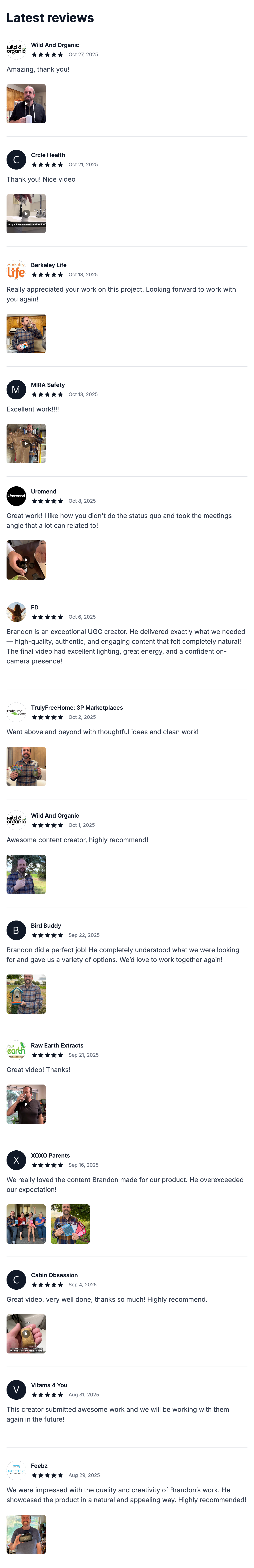 Hi! I’m Brandon—a UGC creator with more than 15 years of experience in front of the camera and behind the screen editing. I love using my professional background in marketing to tell stories that helps brands connect and build trust with their audience.